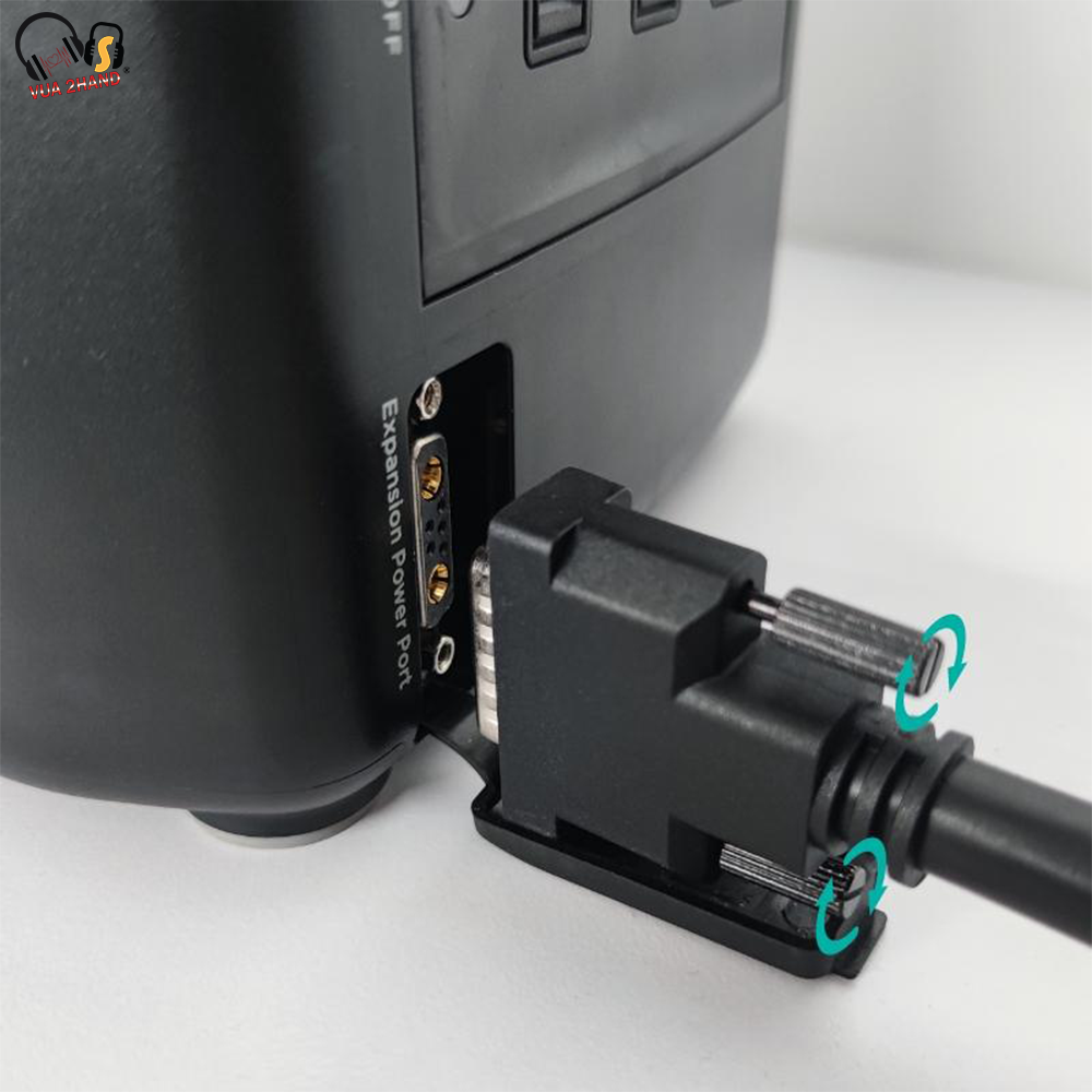- Bước 2: Mở nắp che cổng mở rộng trên RIVER Pro và cắm dây kết nối mở rộng, siết các ốc trên cổng kĩ và chắc chắn