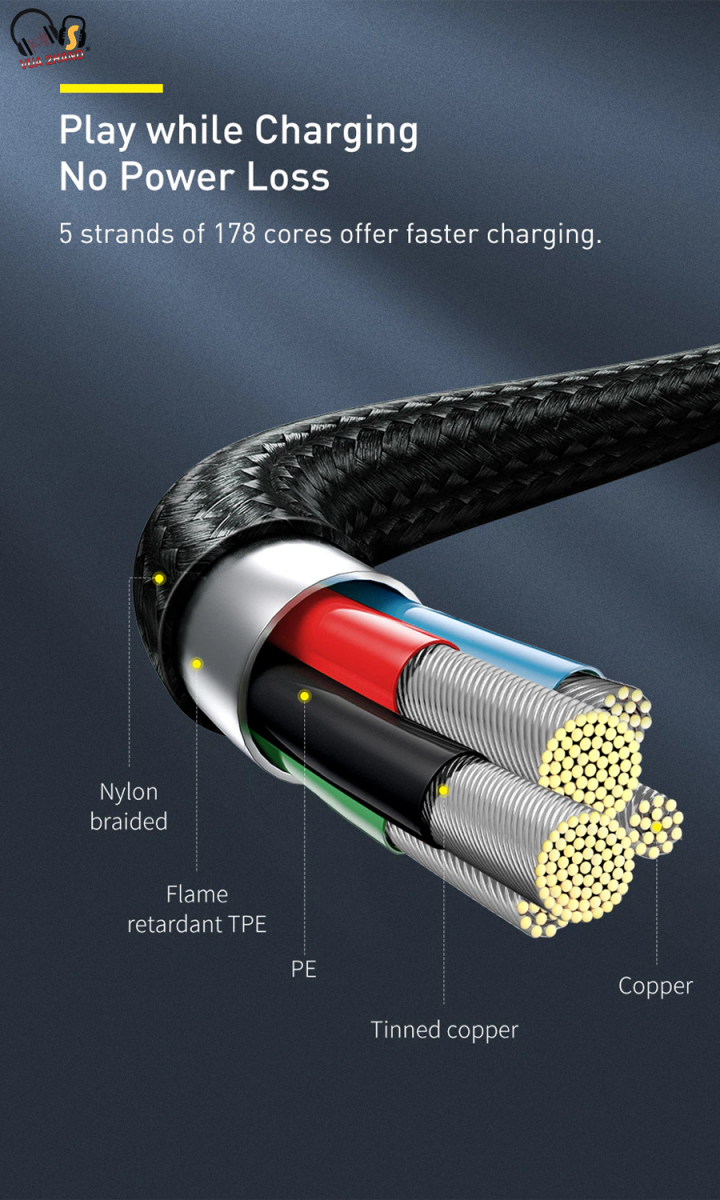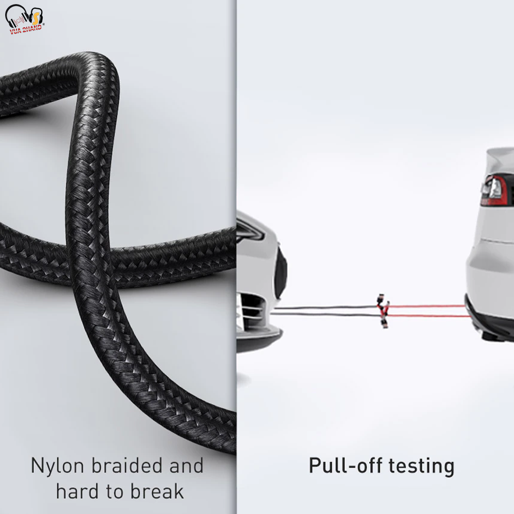 - Đầu cáp làm bằng kim loại cao cấp chống rỉ sét, dây cáp làm bằng sợi Nylon Carbon siêu bền . Các lõi cáp bên trong được làm băng hợp kim cao cấp, có tiết diện lõi lớn hơn , được bao bọc bởi các lớp vải dù làm bằng sợi Nylon Carbon siêu bền không bị dãn, đứt hay biến dạng sau thời gian dài sử dụng. Đầu cáp được thiết kế đặc biệt chống hiện tượng gảy đầu cáp .