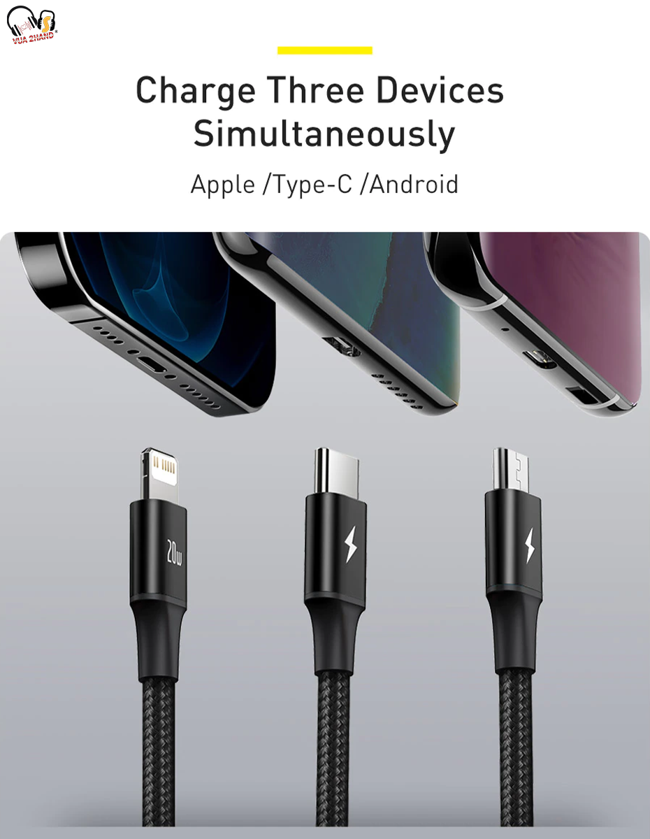 -------> Link đặt hàng shopee Cáp sạc 3 đầu Baseus Rapid Series 3-in-1 PD 20W: Tại đây
