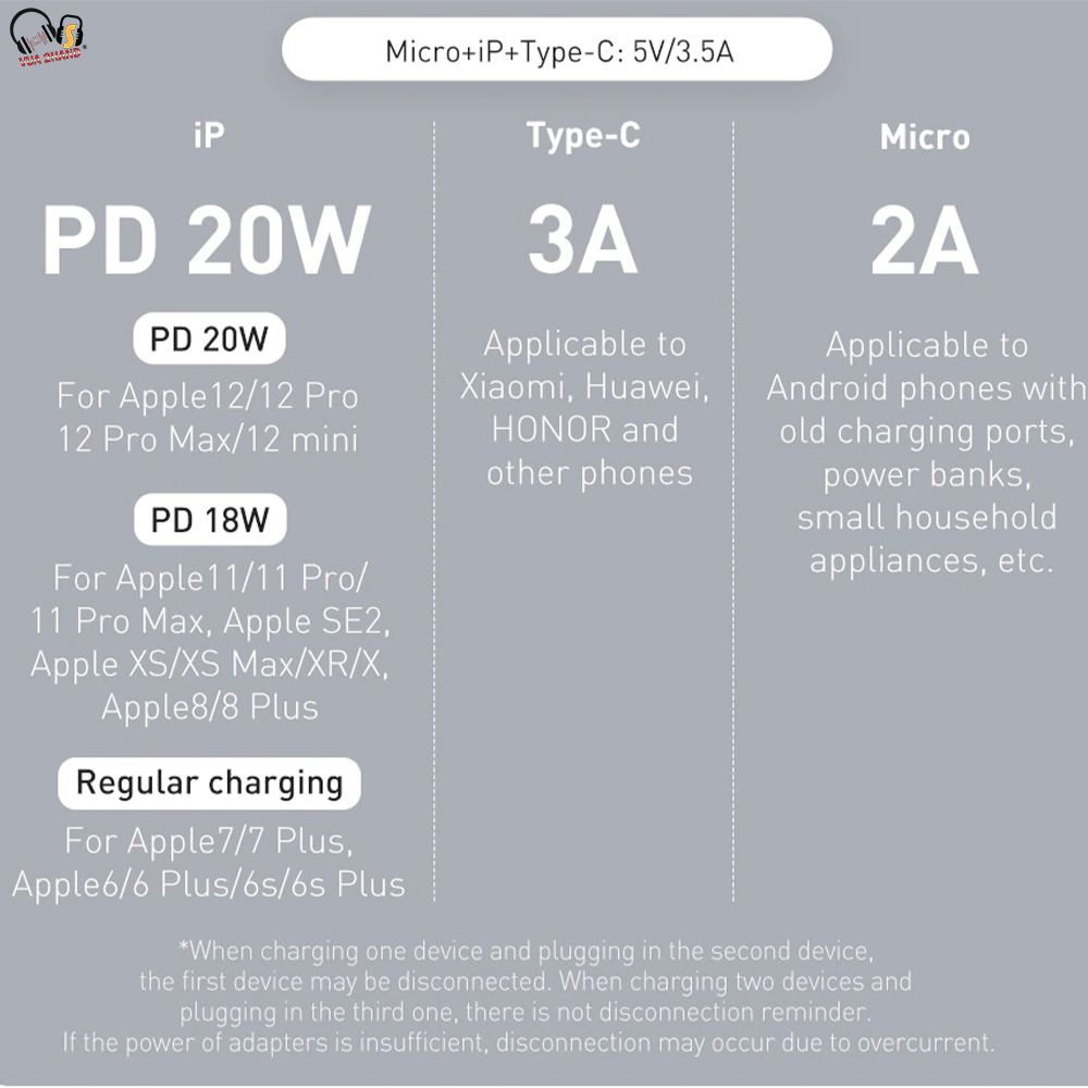 - Hỗ trợ sạc cho cả 3 thiết bị cùng lúc , công nghệ tự động nhận dạng và điều tiết dòng sạc trên từng cổng kết nối. Tương thích, an toàn với hầu hết các thiết bị số nhờ khả năng tự dộng nhận dạng thiết bị.