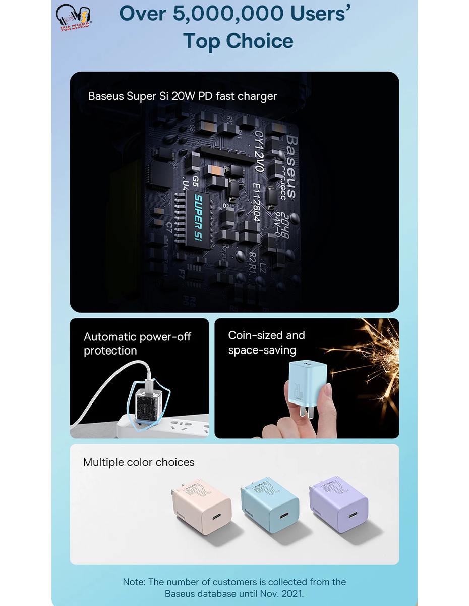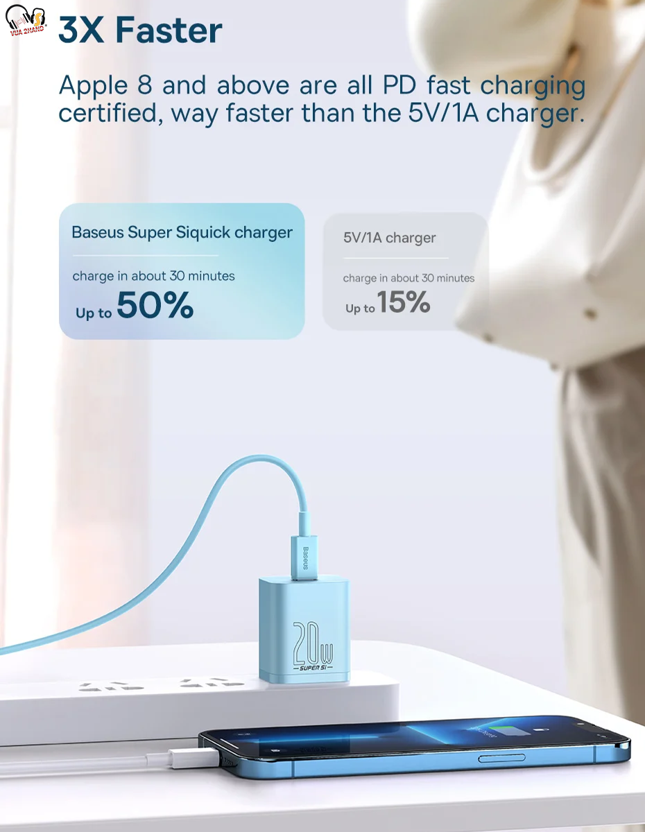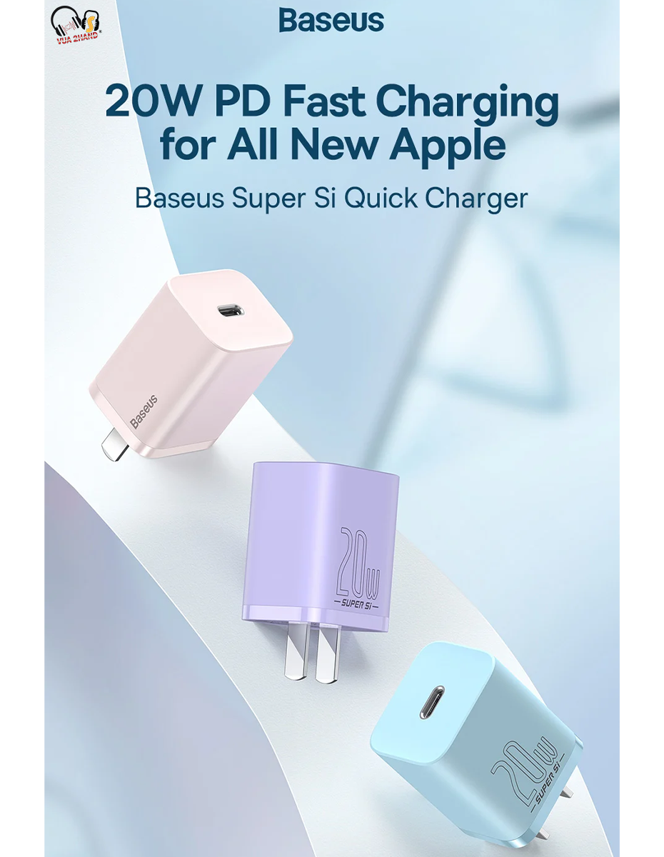 - Nhờ được trang bị công nghệ bán dẫn Super Si nên Bộ sạc nhanh đa năng Baseus Super Si Quick Charger 20W có thể hỗ trợ đồng thời các chuẩn sạc nhanh Power delivery và Quick charge 3.0 với công suất lên đến 20W nhưng với một kích thước vô cùng nhỏ gọn.