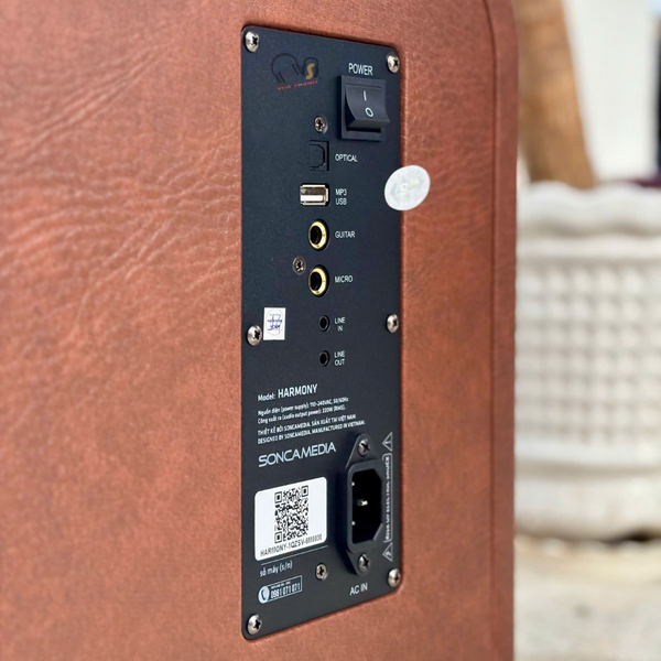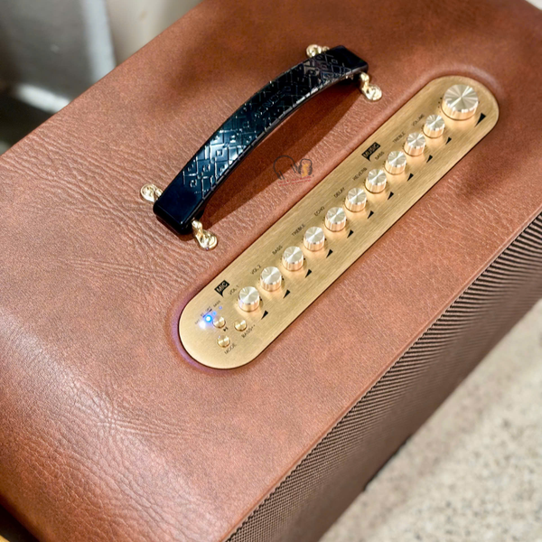 Kiểu dáng & Chất liệu: Loa có thiết kế di động, sang trọng với thùng gỗ bọc da cao cấp (thường có các màu Đen, Nâu da bò, Kem) và lưới ê-căng bảo vệ. Điểm nâng cấp đáng chú ý là có thêm quai xách tiện lợi, giúp dễ dàng di chuyển dù loa có trọng lượng khoảng 19.5 kg.