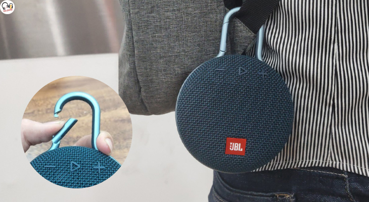 - Kích thước nhỏ gọn, mini khá độc đáo với móc treo loa.