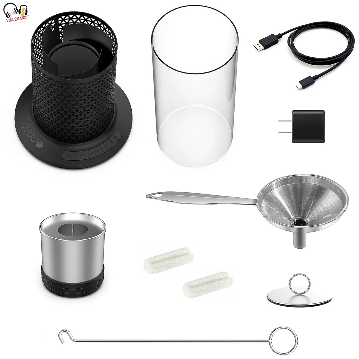 - Hộp đựng bình nhiên liệu có nắp đậy, phễu kim loại và hai bông bấc