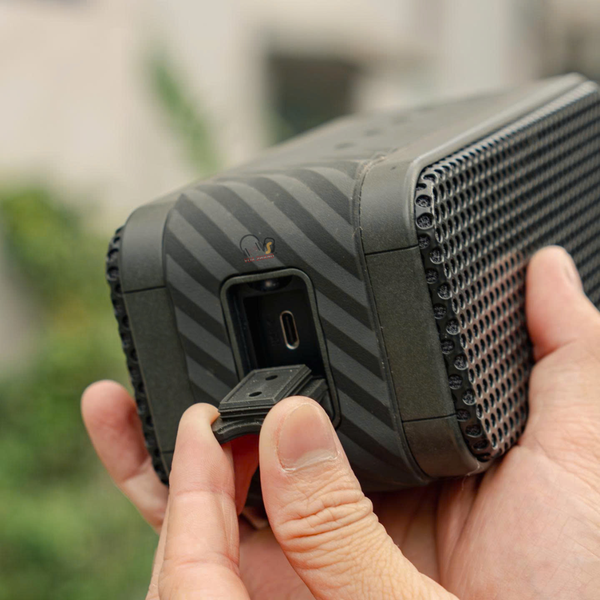 Độ bền cao: Loa đạt chuẩn IP67, giúp chống bụi hoàn toàn và chống nước (có thể ngâm ở độ sâu 1m trong 30 phút). Đặc biệt, quanh loa có dải cao su dày giúp chống sốc và va đập tốt.