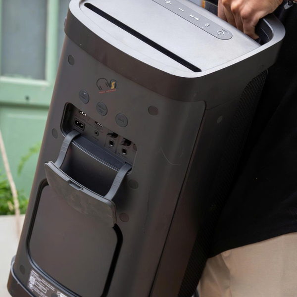 Kích thước & Trọng lượng: Loa có thiết kế dạng đứng với trọng lượng khoảng 11.2 kg. Dù khá nặng nhưng Sony đã tích hợp tay cầm chắc chắn giúp bạn có thể xách loa đi mọi nơi dễ dàng.