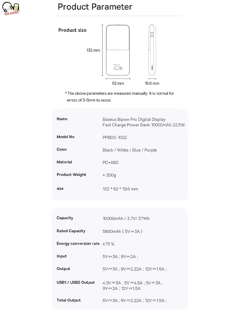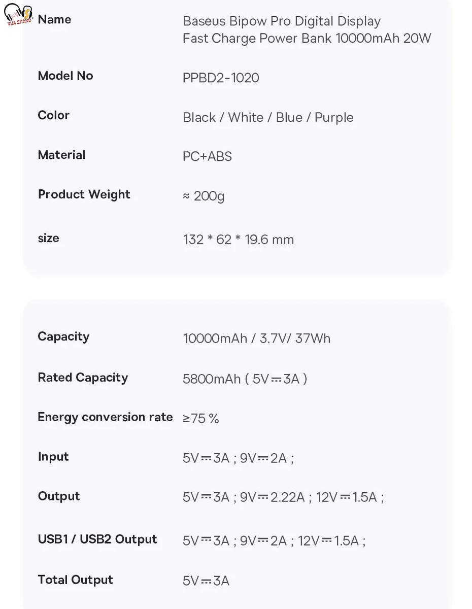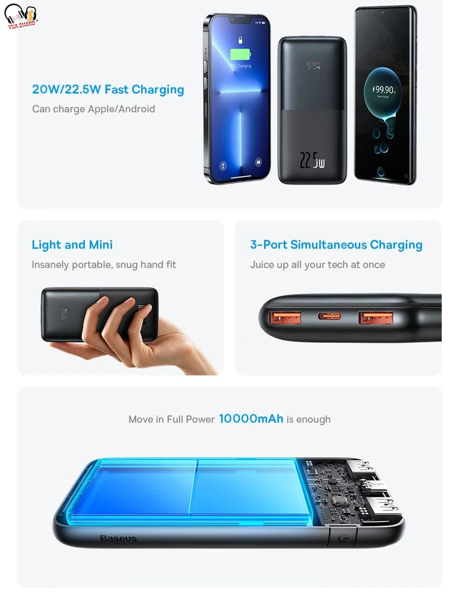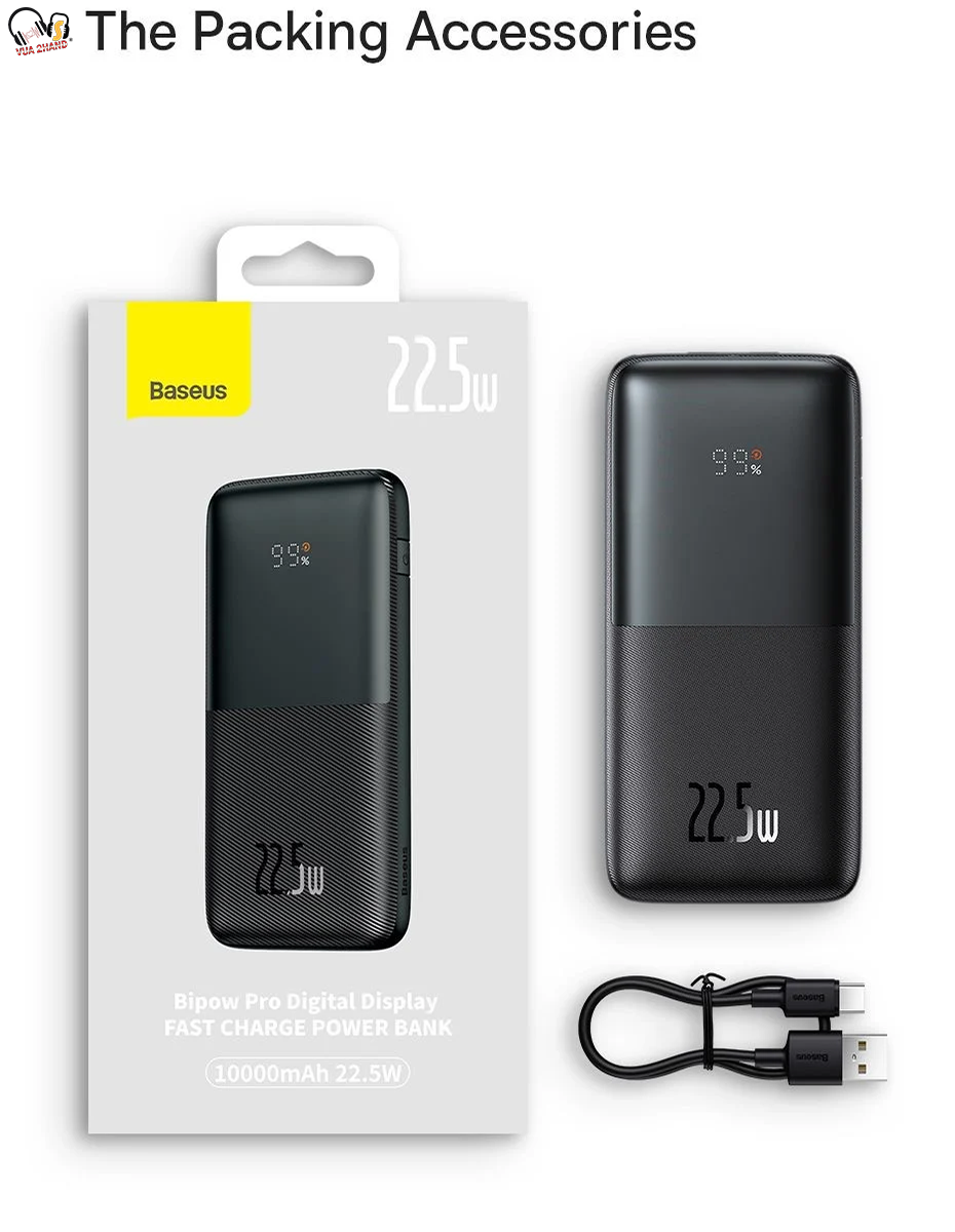 - Pin Dự Phòng Sạc Nhanh Thế Hệ Mới Baseus Bipow Pro có dung lượng 10,000mAh/ 20,000mAh , cống suất 20W/ 22.5W hỗ trợ hầu hết các chuẩn sạc nhanh hiện nay, tương thích với hầu hết các thiết bị số hiện nay từ Smartphone/ Tablet/ iPhone / iPad (có hỗ trợ sạc pin qua cổng Type C Power Delivery)...