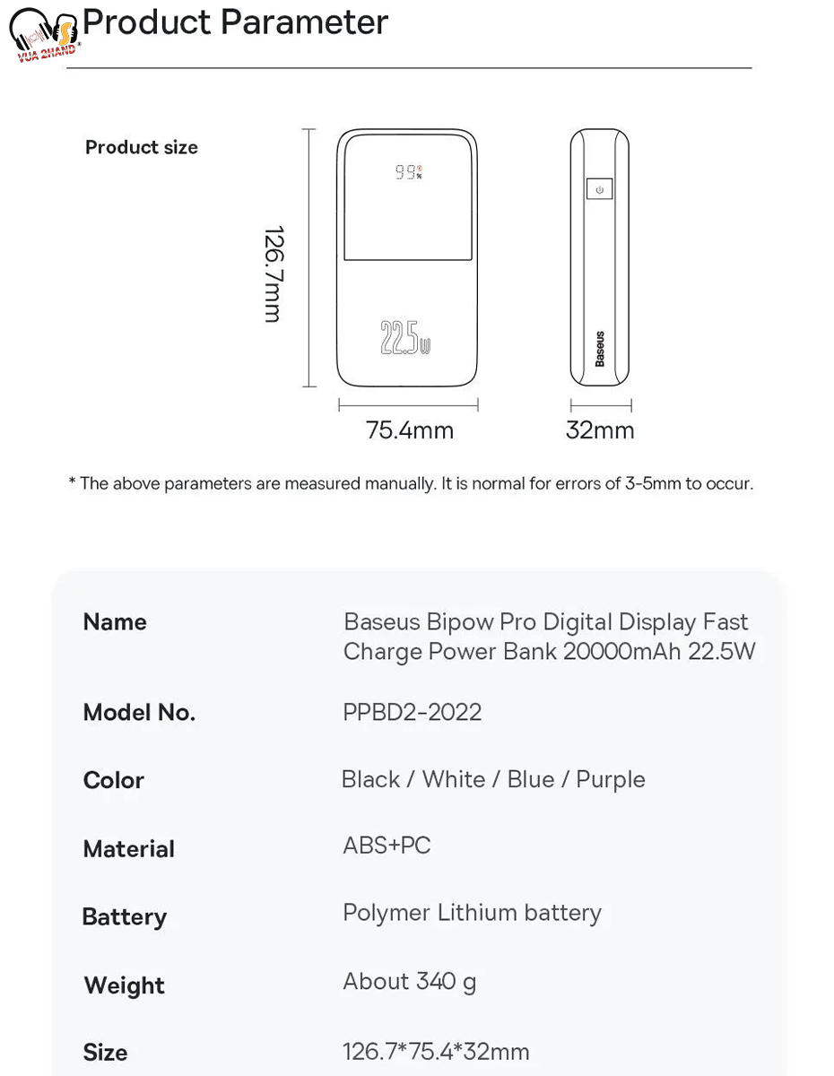 - Pin Dự Phòng Sạc Nhanh Thế Hệ Mới Baseus Bipow Pro có dung lượng 10,000mAh/ 20,000mAh , cống suất 20W/ 22.5W hỗ trợ hầu hết các chuẩn sạc nhanh hiện nay, tương thích với hầu hết các thiết bị số hiện nay từ Smartphone/ Tablet/ iPhone / iPad (có hỗ trợ sạc pin qua cổng Type C Power Delivery)...