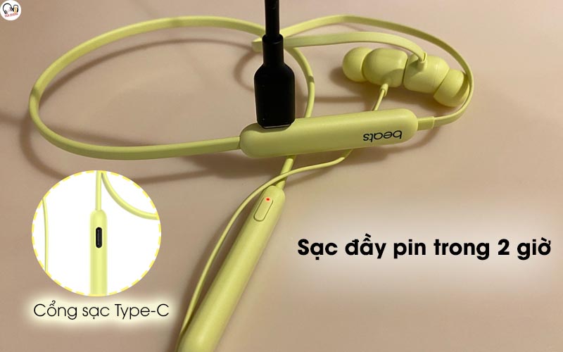 Tích hợp trên Beats Flex MYMC2/ MYMD2 cổng sạc Type-C, chỉ cần kết nối và sạc trong 2 tiếng là bạn sẽ có ngay 12 tiếng dùng liên tục, nếu không thể chờ, sạc nhanh trong 10 phút để dùng được tới 1.5 tiếng.