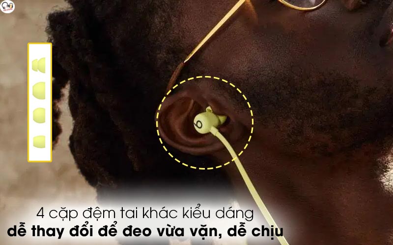 2 củ tai được bao bọc bởi 4 mẫu nút đệm khác thiết kế (1 cặp gắn trực tiếp lên tai nghe, 3 cặp rời) cho bạn dễ dàng thay đổi tùy theo khuôn tai và cảm nhận của mình để đảm bảo đeo tai nghe phù hợp, sử dụng tiện lợi và thoải mái nhất.