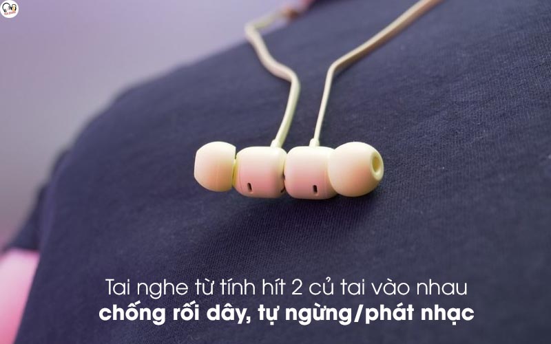 Tai nghe  từ tính, khi không sử dụng bạn có thể chạm 2 củ tai lại với nhau, thao tác này giúp hạn chế rối dây và thất lạc tối đa. Đặc biệt, còn hỗ trợ tính năng tự động dừng, phát nhạc thông minh bằng cách người dùng đặt 2 đầu củ tai hít vào nhau thì âm nhạc sẽ được dừng lại còn khi đeo củ tai vào tai, âm nhạc sẽ được phát tiếp.