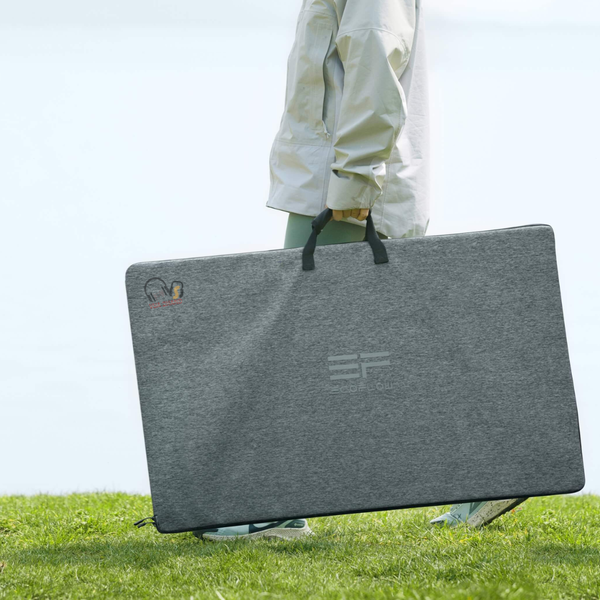 • Gọn nhẹ và dễ dàng mang theo: Mặc dù công suất lớn, tấm pin vẫn có thể gập lại thành một kích thước nhỏ gọn. Khi gập, kích thước là 105.8 x 62 x 2.4 cm và nặng khoảng 16 kg (kèm túi đựng), giúp bạn dễ dàng cất giữ và di chuyển.