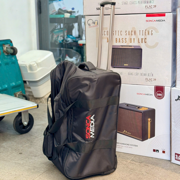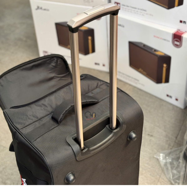 Lời khuyên: Khi mua túi, bạn nên ưu tiên loại có bánh xe lớn và tay kéo bằng kim loại chắc chắn để chịu được tải trọng gần 20kg của loa.