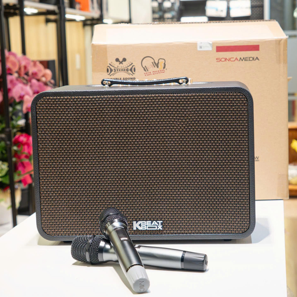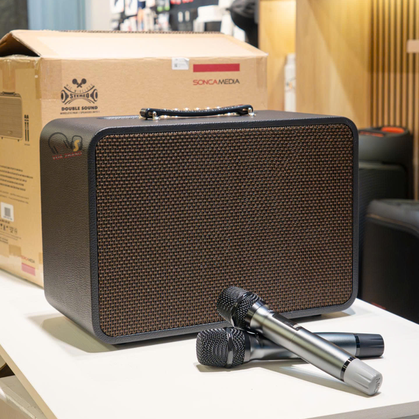 Phụ kiện: Kèm theo 2 micro không dây UHF hút âm tốt, nhẹ hơi, dễ hát.