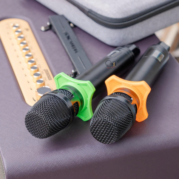 Micro không dây: Đi kèm 2 micro UHF cao cấp, nhẹ hơi, dễ hát, cho giọng ca trung thực.