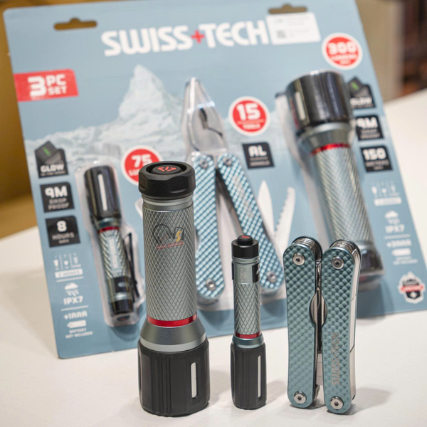 Bộ dụng cụ đa năng 15 chức năng và 2 Đèn pin cao cấp Swiss+Tech ST001256 - KHUI HỘP VÀ TRẢI NGHIỆM