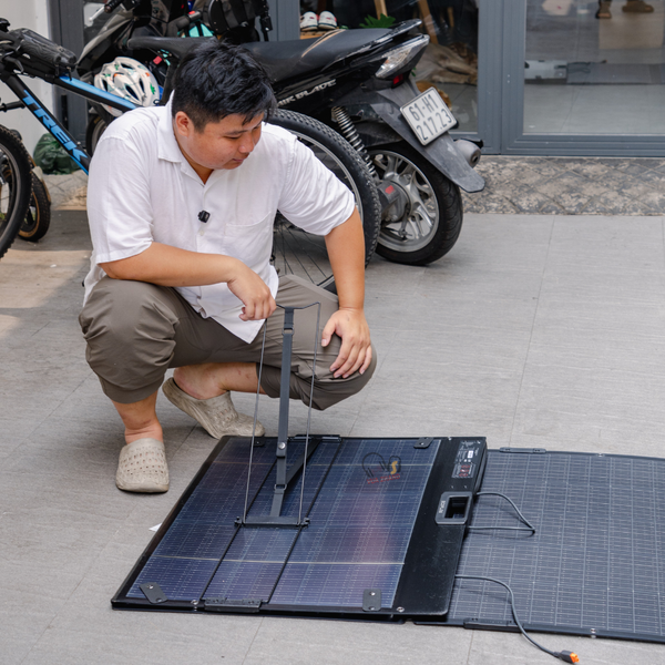 Chốt cố định: Cho phép bạn thiết lập nhanh ở 3 góc nghiêng cố định để đón nắng tốt nhất mà không sợ gió thổi làm đổ pin.