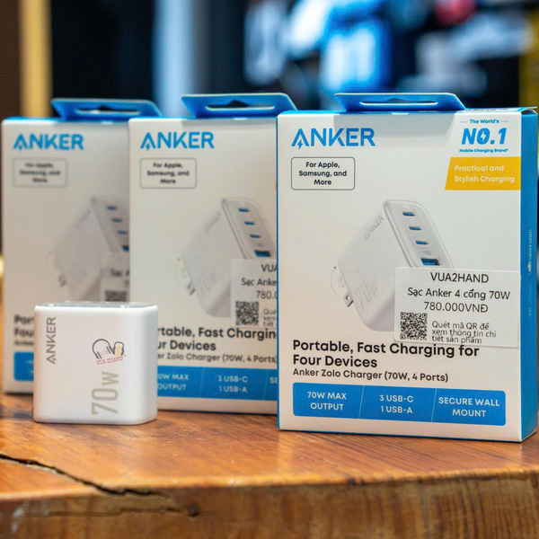 Sạc Anker Zolo 70W (Model A121C) là một trong những củ sạc đa năng mới nhất của Anker, sử dụng công nghệ GaN thế hệ mới để tối ưu kích thước và hiệu suất. Đây là lựa chọn lý tưởng cho những ai cần một củ sạc duy nhất cho cả laptop, điện thoại và các phụ kiện nhỏ.Anker 4 cổng 3C1A GAN 70W A121C Giá rẻ hơn khi đặt hàng qua sàn SHOPEE: Nhấn vào đây