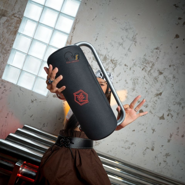 Tay cầm tích hợp: Điểm nhấn đặc biệt là tay cầm cá tính, giúp bạn dễ dàng xách và mang loa di chuyển đến bất cứ đâu (trọng lượng khoảng 3.07kg).