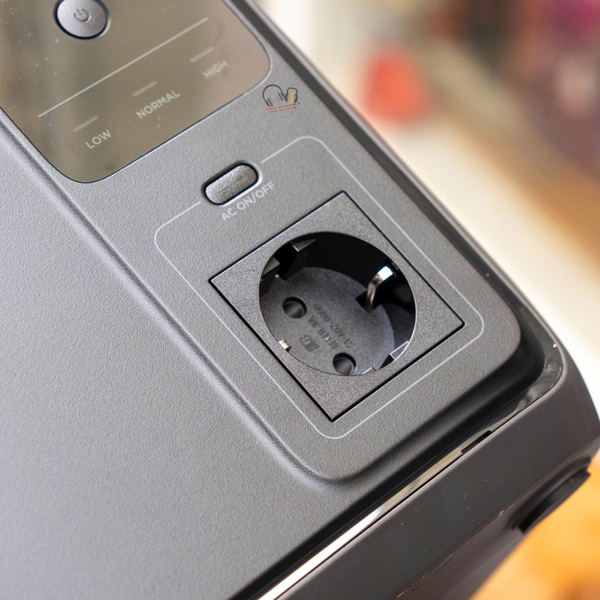 Cổng AC (Ổ cắm 220V): Nhấn nút AC ON/OFF. Đèn nút này sáng lên là bạn có thể cắm quạt, nồi cơm, laptop...