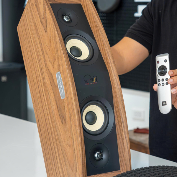 Thẩm mỹ sang trọng: Thiết kế mang phong cách Retro/Vintage đặc trưng của dòng loa JBL Classic Series (như L100), với thùng loa phủ veneer gỗ thật (Walnut hoặc Black Walnut) và lưới tản nhiệt xốp Quadrex huyền thoại. Loa đóng vai trò như một món đồ nội thất đẹp mắt, dễ dàng hòa hợp với nhiều không gian.