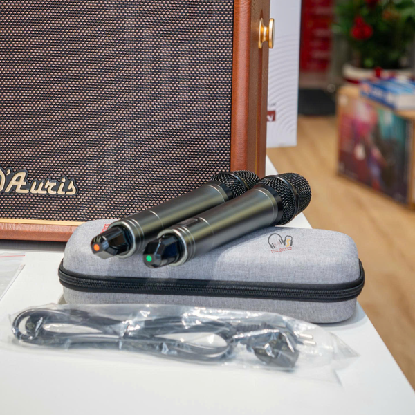 Karaoke di động: Đi kèm 2 micro UHF vỏ nhôm nhẹ hơi, dễ hát.