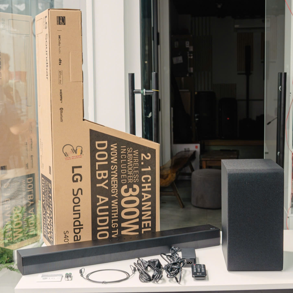 LG S40T là bộ loa thanh 2.1 kênh, bao gồm một loa thanh chính và một loa siêu trầm (Subwoofer) rời không dây, được thiết kế với tổng công suất mạnh mẽ và nhiều công nghệ âm thanh thông minh.