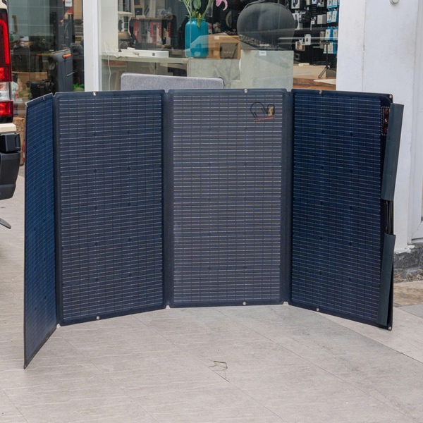Gấp gọn 4 lớp: Tấm pin có thể gấp lại gọn gàng như một chiếc túi xách, thuận tiện cho việc di chuyển bằng xe hơi hoặc lưu trữ.
