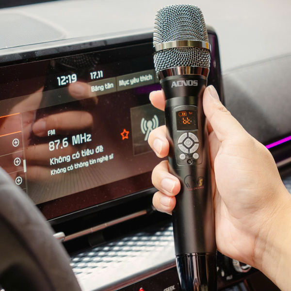 Phát sóng FM không dây: Đây là tính năng cốt lõi. Micro có thể phát sóng tín hiệu âm thanh (nhạc và giọng hát đã qua xử lý) trực tiếp lên hệ thống loa xe ô tô thông qua tần số FM (87.6 – 107 MHz). Bạn chỉ cần dò đài FM của xe trùng với tần số của micro là có thể hát ngay, không cần cắm dây rườm rà.