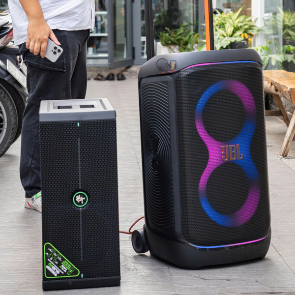 • Pin Hot-Swappable: Đây là tính năng đột phá. Loa có hai khe cắm pin. Bạn có thể sử dụng 1 pin cho 6 giờ hoạt động, và thêm pin thứ hai (bán rời) để đạt tối đa 12 giờ. Quan trọng hơn, bạn có thể thay pin nóng ngay trong khi loa đang hoạt động mà không bị gián đoạn âm thanh.