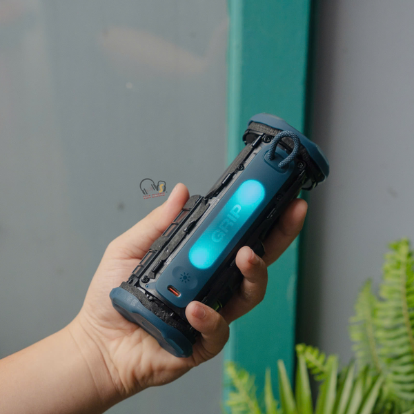 Độ Bền Vượt Trội (IP68 và Chống Rơi): Đây là điểm mạnh lớn nhất. Với chuẩn IP68 (chống bụi và nước ở mức cao nhất, có thể ngâm nước), cùng khả năng chống sốc (chịu được cú rơi 1 meˊt xuống nền bê tông), Grip là "người bạn đường" hoàn hảo cho các chuyến du lịch, cắm trại, hoặc tiệc tùng bên hồ bơi.