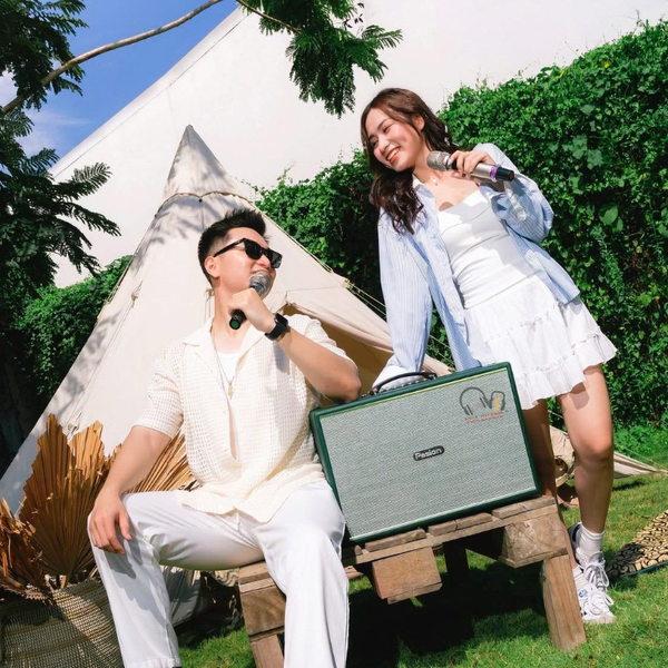 Micro UHF cao cấp: 2 micro không dây đi kèm được thiết kế để bắt âm rất nhạy và có khả năng chống hú (feedback suppression) hiệu quả. Tín hiệu ổn định, giúp người hát tự tin di chuyển mà không lo bị ngắt quãng hay nhiễu sóng.