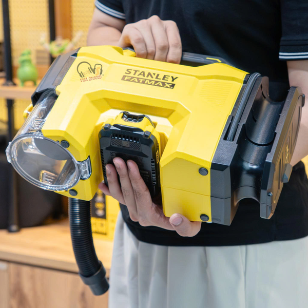 Nguồn Điện Linh Hoạt: Khả năng dùng Pin Stanley Fatmax V20 (không dây) hoặc Tẩu sạc Ô tô 12V DC mang lại sự chủ động tuyệt đối cho người dùng, có thể sử dụng ở bất cứ đâu.
