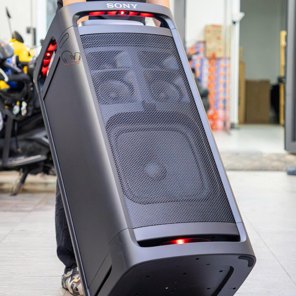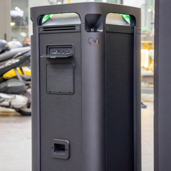 Tính di động: Dù lớn, loa được tích hợp tay cầm lớn và bánh xe ở mặt sau, giúp người dùng kéo đẩy dễ dàng như một chiếc vali.