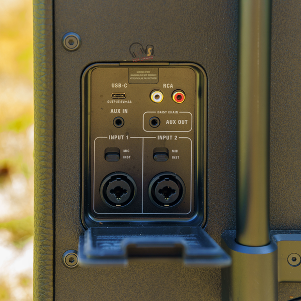 Cổng Kết nối Chuyên nghiệp: Trang bị hai cổng combo XLR/6.35mm cho phép cắm trực tiếp Micro và Nhạc cụ (Guitar, Keyboard) với khả năng điều chỉnh âm lượng riêng và hiệu ứng Reverb/Delay ngay trên bảng điều khiển.